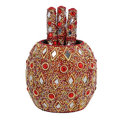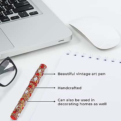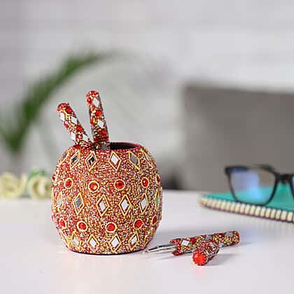 This handcrafted set of 5 blue rhinestone beaded pens with a matching holder makes the perfect gift for scribes and art lovers. A classic addition to your table decor, the ballpoint pens and holder have a beaded exterior that is not only aesthetically appealing but also a handy addition to your stationery. The pens and holders are lightweight and durable.