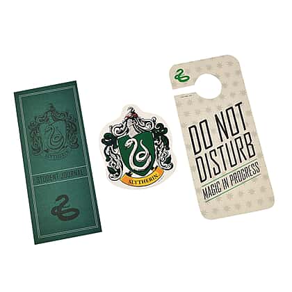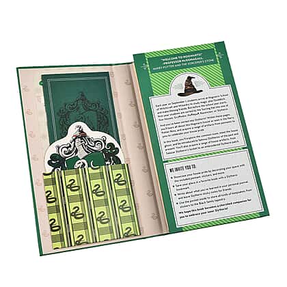 Harry Potter Book with Badge, Flag, Journals, Pencil and Artifacts from Wizarding World- Slytherin Magic