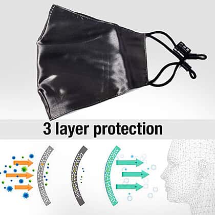 100% Mulberry Silk Face Cover with 7 pcs Melt Blown Cotton Pad (Size 22.5x14 Cm) - Black