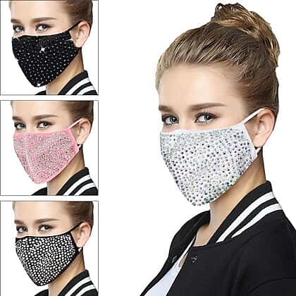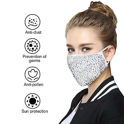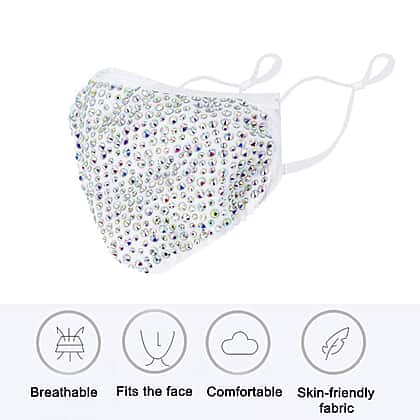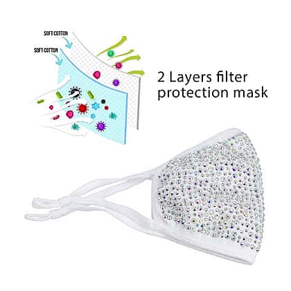 2 Layer Fashion Face Cover Silver Reusable Aurora Borealis Crystal Covered