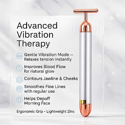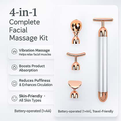 4-in-1 Facial Vibration Massage Roller - Four Interchangeable Massage Heads Including 1 Straight T-Shape Head, 1 Curved T-Shape Head