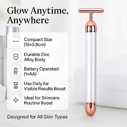 Upgrade your skincare routine with this 4-in-1 Face Massager Roller, crafted from durable zinc alloy in a sleek silver-white finish. Measuring 15x3.8cm, it features a vibration function (on/off) powered by a single AA battery (not included). This versatile tool includes four interchangeable heads—a straight T-shape, curved T-shape, curved circle, and rolling ball head—designed to stimulate blood circulation and the lymphatic system. Ideal for enhancing skincare product absorption, reducing puffiness, and improving skin tone, this compact massager delivers spa-like results in the comfort of your home. It’s a perfect addition to your beauty regimen and is suitable for all skin types.