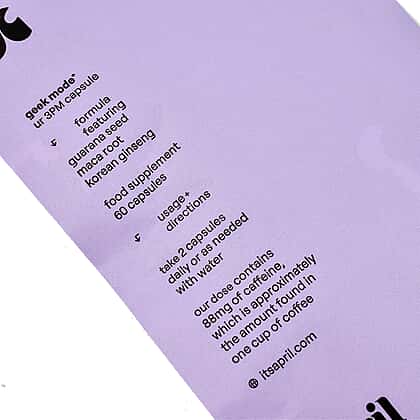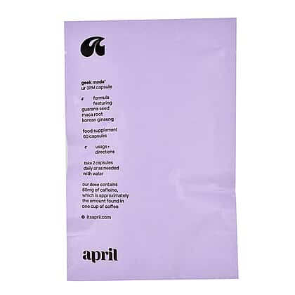The April Supplements Geek Mode Ur 3 pm Capsule Focus Refill Paper Pouch is a powerful supplement to enhance cognitive function and productivity. This formula includes Guarana Seed, Maca Root and Korean Ginseng to improve focus and mental clarity. The eco-friendly refill paper pouch contains 60 capsules, making it an economical and convenient option. With April Supplements Geek Mode Ur Capsule Focus Refill Paper Pouch, you can stay sharp and productive throughout the day.
