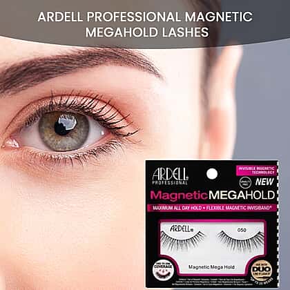 Transform your gaze with Ardell Professional Magnetic MEGAHOLD Lashes. These revolutionary lashes affix with magnetic precision, offering an effortlessly glamorous look without the fuss of glue. Perfect for a swift, stunning enhancement to your natural beauty, they promise an all-day hold for any event. Embrace the allure of full, luscious lashes that make a statement: bold, beautiful, and utterly bewitching. Ready to wear, they're the secret to captivating eyes in an instant.