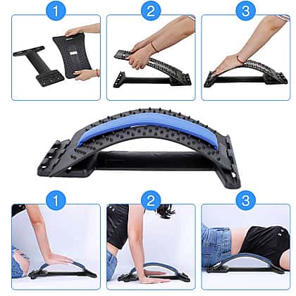Back Stretcher with Adjustable Back Support (39x25cm) - Black and Blue Colour