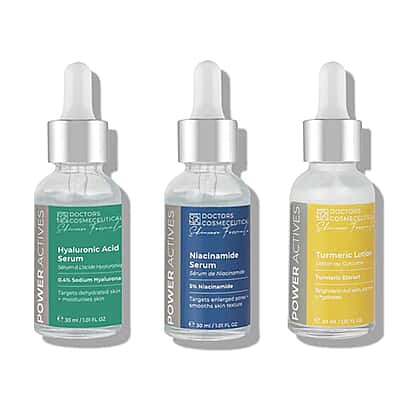 Introducing the Hero Hydrator bundle from Doctors Formula, the ultimate solution for anyone seeking to quench their thirsty skin. Our Niacinamide Serum targets blemishes and improves skin texture, while our Hyaluronic Acid Serum provides an intense hydration boost, locking in moisture for a plump, youthful appearance. Our Turmeric Lotion completes the trio, calming inflammation and providing essential nourishment. Together, these three products provide a powerful hydration solution that will leave your skin feeling soft, supple, and perfectly hydrated. Don't miss out on the chance to become a hero for your skin - try Doctors Formula's Hero Hydrator bundle today and experience the difference!