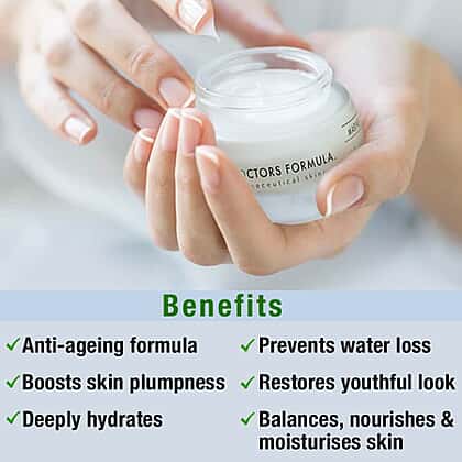 Are you tired of waking up to dull, tired-looking skin? Let Doctors Formula Anti Ageing Restoring Night Moisturiser work its magic while you sleep! This luxurious moisturiser is specially formulated to restore and rejuvenate your skin, helping to reduce the signs of ageing and leaving you with a brighter, smoother complexion. Packed with skin-loving ingredients like retinol and hyaluronic acid, it delivers intense hydration and nourishment to your skin, helping to promote cell renewal and repair. With regular use, you'll notice a visible improvement in the texture, tone and overall health of your skin. Give your skin the love it deserves with Doctors Formula Anti Ageing Restoring Night Moisturiser!