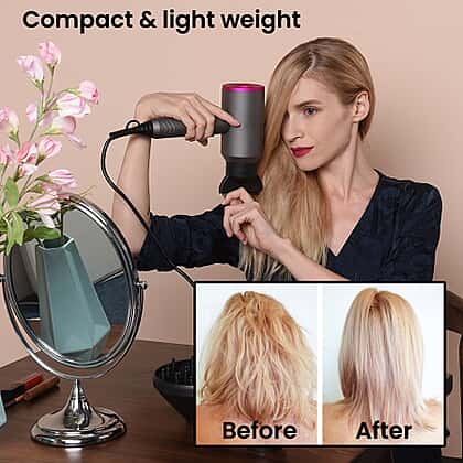 - GLOSSY AND HEALTHY HAIR: Make your hair glossy, soft and healthy with this compact and portable mini hairdryer