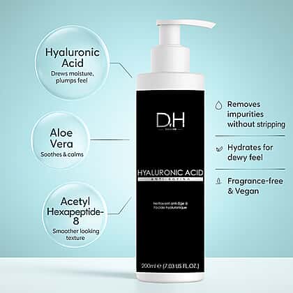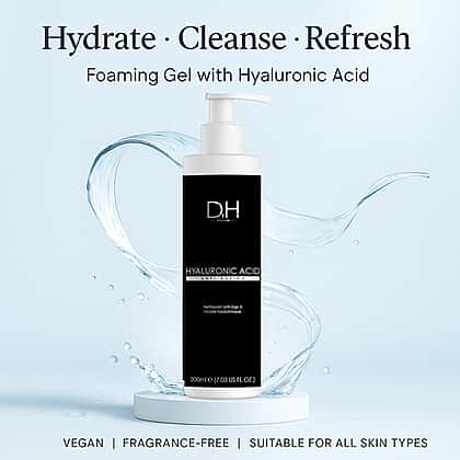 Dr H Foaming Gel Cleanser with Hyaluronic Acid is your daily go-to for fresh, hydrated, and visibly smoother skin. This gentle yet effective cleanser removes makeup, dirt, and impurities without stripping your skin of essential moisture. Powered by Hydrolysed Hyaluronic Acid, it deeply hydrates and plumps the complexion, while soothing Aloe Vera calms and refreshes. Acetyl Hexapeptide-8 helps improve elasticity and reduce the appearance of fine lines, leaving skin soft and supple. Ideal for all skin types, this vegan, cruelty-free formula is free from parabens, sulfates, and artificial fragrance—making it a skin-loving essential for your cleansing routine.