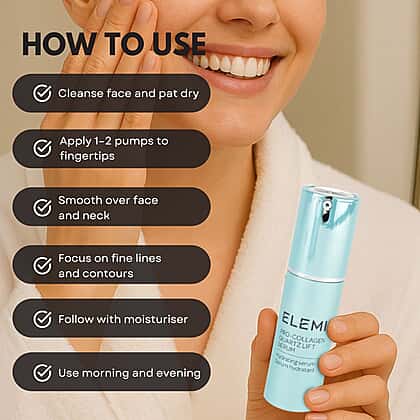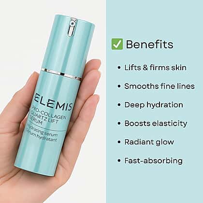 ELEMIS Pro-Collagen quartz lift serum 30ml delivers a powerful anti-ageing boost, leaving your skin visibly lifted and firmer. Infused with rhodochrosite quartz, it forms a protein-rich network to smooth fine lines and wrinkles, promoting a youthful complexion. Its advanced formula includes Padina Pavonica and Argan Oil for optimal hydration and skin nourishment. This lightweight serum absorbs effortlessly, making it perfect for daily use. Encased in an elegant, user-friendly bottle, it offers a touch of luxury to your skincare routine. Perfect for those seeking visible results, it’s a must-have for smoother, firmer, radiant skin.