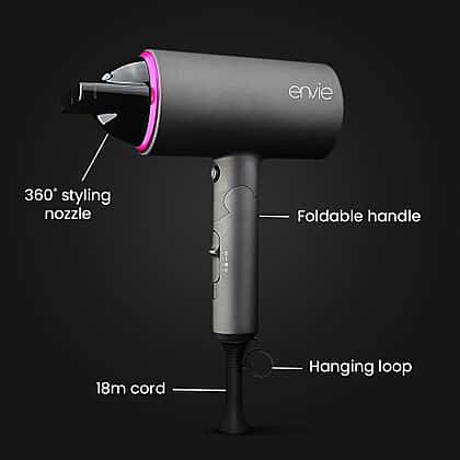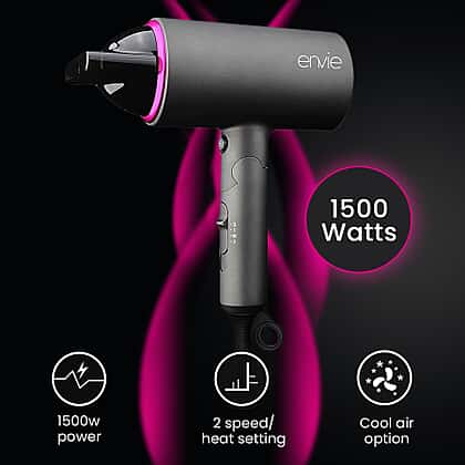 Envie Foldable Hair Dryer with 1500 Watts Drying Airstream with Heat and Cool Shot Mode and Styling Nozzle For Men and Women