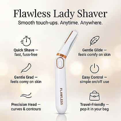 Enjoy smooth, confident grooming with the finishing touch, a flawless lady shaver in white. Designed for gentle and effective hair removal, this handy device helps tidy unwanted hair without nicks, cuts, or irritation. The slim, lightweight shape allows for easy control, making it suitable for use on legs, arms, underarms, and other delicate areas. Supplied with useful attachments, it supports neat, precise results while remaining simple to use. Compact enough to store away or take along when travelling, this shaver offers a straightforward solution for maintaining a well-groomed feel as part of a regular personal care routine.