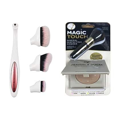 Flawless Finish Duo - W7 Magic Touch Mineral Perfecting Powder with Brush and Real Techniques 3 in 1 Adjustable Blender Set With Magnetic Heads