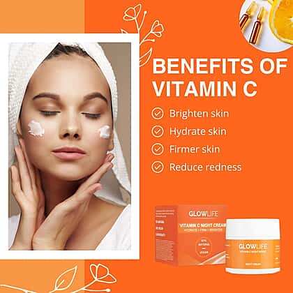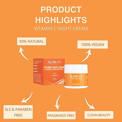 Rejuvenate your skin overnight with Glowlife Vitamin C Night Cream. This luxuriously smooth formula, infused with Vitamin C, delves deep to hydrate and leave your complexion radiant and silky. Comprising 93% natural ingredients, it's designed to brighten, firm, and reduce redness while you sleep. Its vegan-friendly, fragrance-free composition ensures a gentle yet effective treatment for all skin types.
