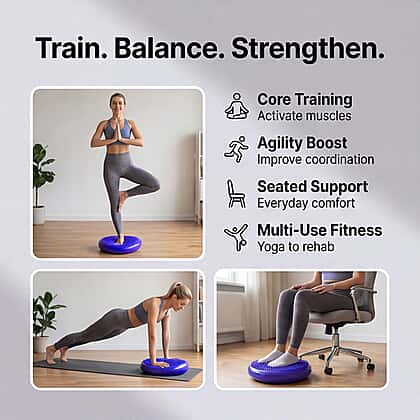 JLL Inflatable Balance Cushion for Fitness Core Training Agility Gym Workouts Yoga - Purple
