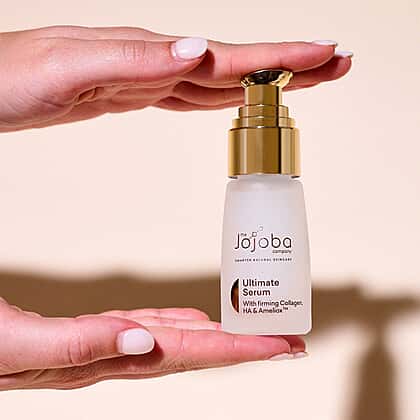 Say goodbye to wrinkles and fine lines with this absolute jojoba serum and make your skin glow more each day. This serum includes vegan collagen called HumaColl21, derived from peptide ameliox and hyaluronic acid, which helps the skin to produce natural collagen, visibly reduces ageing fine lines and wrinkles, and provides youthful skin. The proven results of this serum will delight your skin care regimen.
