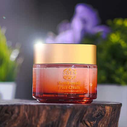 Indulge your skin with the luxurious Kumkumadi Face Cream With SPF 50, a daily nourishing moisturiser that revitalises and enhances radiance. Infused with multi-vitamins and the uplifting natural fragrance of Saffron, this fast-absorbing, weightless cream combats dullness, energises and smoothens skin. Perfect for boosting your glow and minimising signs of tiredness, it offers the added benefit of SPF 50 to protect your skin from harmful UV rays while keeping it moisturised and nourished.