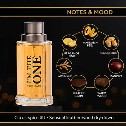 Laurelle I'M The One EDT is the scent of presence for individuals who have a bold, fearless, and effortlessly magnetic personality. It opens with a luminous burst of mandarin orange and bergamot, their brightness sharpened by the spicy pulse of ginger. The initial spark is daring yet refined, setting the stage for a heart that hums with quiet confidence.At its core, maninka fruit and lavender intertwine in a smooth, sensual rhythm, subtly sophisticated but never shy. As the fragrance deepens, leather and woody accords become overwarm, textural, and memorably intense. The result is a signature that lingers long after you’ve left the room, capturing the essence of power draped in elegance.Because this isn’t just perfume. It’s attitude bottled up.