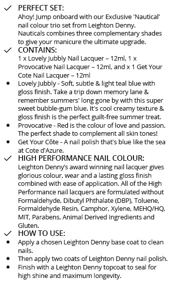Leighton Denny Nauticals Trio (Incl. Lovely Jubbly, Provocative & Get Your Cote) - 3x12ml