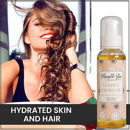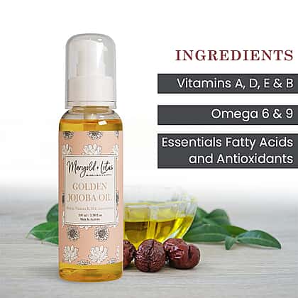 Marigold and Lotus 100% Pure Cold Pressed Golden Jojoba Oil with Vitamin A, B,D and Viatmin E, Omega 6, 9 and Essential Fatty Acid and Anti-oxidants for Hydrated Skin