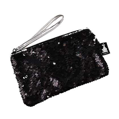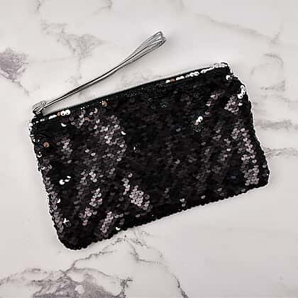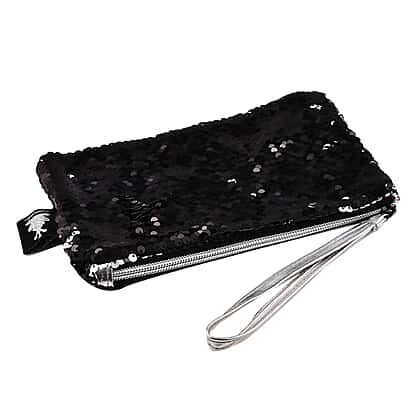 MAMALU Sequin Cosmetic Case with Zipper Closure - Black