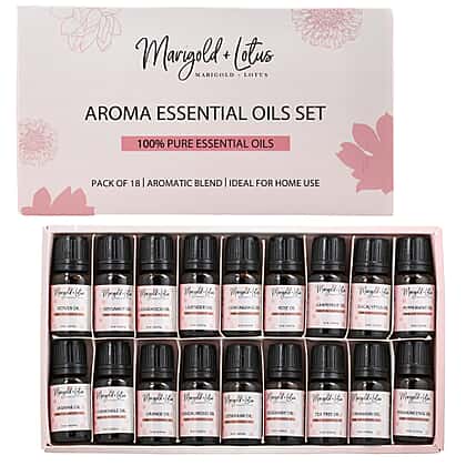 Marigold & Lotus - Set of 18 Premium Aroma Essential Oils, Aromatic Blends - 10 Ml Each