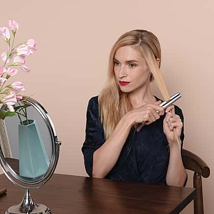 Multi Functional Mini & Travel Portable Hair Curl Straightener with LED Indicator and Power Cable - Silver