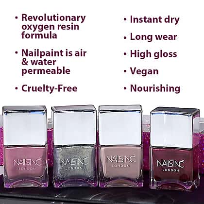 Nails Inc Paint Your Nails Happy Racy and Retro 14ml,Throwing Shapes 14ml,Full Coverage 14ml and Crushing Rubies 14ml