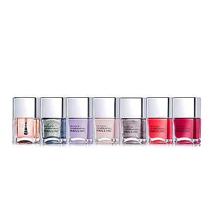 Nails Inc: Saved by the Beach Poolside Paradise, Sundaze, Sunning at Sunset, Got the Rose Factor, Golden Hour Goddess, Afternoon Napping and Caviar Top Coat -