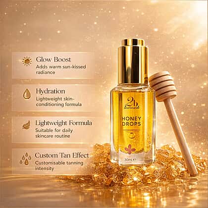 Customise your glow effortlessly with 2bTanned Honey Drops, a playful and innovative way to build your tan drop by drop. Designed to blend easily into your favourite moisturiser or serum, these gradual tanning drops allow you to tailor the depth of your bronze while keeping skin beautifully hydrated. Formulated with DHA for gentle colour development and vegan glycerin to maintain moisture, the lightweight liquid leaves skin feeling smooth and soft. The bottle includes its own honey stick applicator, adding a unique and fun touch to your routine. With regular use, skin develops a natural, radiant glow that looks fresh and luminous.