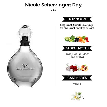 - NICOLE SCHERZINGER DAY NOTES: This Eau de Parfum contains accords of sweet mandarin, bergamot, red and black currants, peach, orchid, freesia, and vanilla, making it ideal for those casual moments