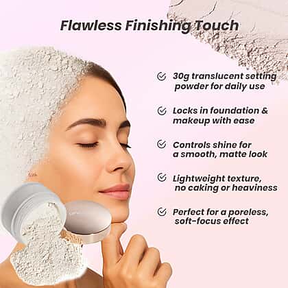 Give your makeup the perfect finishing touch with OPV Beauty Translucent Setting Powder. This versatile powder is just what you need to set foundation, control shine, and achieve a smooth, poreless look. Lightweight and easy to apply, it creates a natural matte finish that lasts without caking or settling into fine lines. With advanced beauty technology, this powder leaves your skin looking flawless and radiant, whether used over makeup or on its own for a fresh, soft-focus effect. This 30g powder is your go-to for a polished, all-day look.