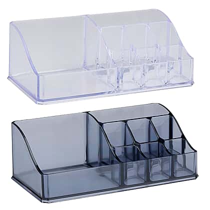 Keeping your dressing table neat has never been easier with this pack of two transparent cosmetic organisers in white and grey. Each organiser is designed with multiple cells, offering the perfect solution for storing makeup brushes, lipsticks, nail polishes, or skincare essentials. The sleek, see-through finish lets you spot items quickly, while the sturdy structure ensures everything stays in place. Compact yet spacious, these organisers fit beautifully on vanities, desks, or bathroom counters. Whether you’re streamlining your beauty routine or adding order to everyday essentials, this versatile set brings both style and practicality to your space.