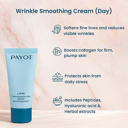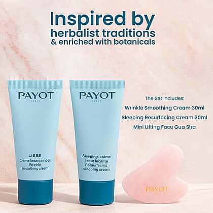 Experience a skin-smoothing ritual with the PAYOT LISSE Smoothing Cares Ritual Set, a beautifully presented collection designed to visibly soften fine lines and sculpt the face. This collagen-boosting trio includes a 30ml Crème Lissante Rides to reduce wrinkles, a 30ml Sleeping Crème Resurfaçante to renew skin overnight, and a complimentary mini Gua Sha tool to support circulation and product absorption. Inspired by herbalist traditions, the set blends botanical efficacy with luxurious textures for a relaxing and effective daily routine. Suitable for all skin types, it promotes a firmer, refreshed, and more radiant complexion over time.