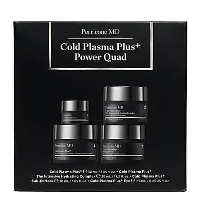 Revitalise your skin with the Perricone MD Cold Plasma Plus+ Power Quad Eye & Skincare Set. This comprehensive set includes Cold Plasma Plus+, Cold Plasma Plus+, The Intensive Hydrating Complex, Cold Plasma Plus+ Sub-D/Neck, and Cold Plasma Plus+ Eye. Each product is formulated to target and improve the most visible signs of ageing. Experience intense hydration, firming, and lifting benefits for your face, neck, and eyes. This powerful skincare set is said to deliver youthful, radiant skin, reducing the appearance of fine lines, wrinkles, and sagging.