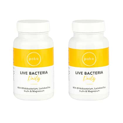 Introducing Poko's Live Bacteria Daily bottle set, your ultimate gut health solution. Each bottle contains 60 easy-to-swallow capsules, packed with 10 billion colony-forming units (CFUs) of beneficial bacteria to support healthy digestion and a strong immune system. Poko's formula contains a blend of five carefully selected strains of bacteria, including Lactobacillus and Bifidobacterium, known for their positive impact on gut health. With regular use, Live Bacteria Daily can help restore balance to your gut microbiome, reduce bloating and discomfort, and improve overall digestive health.
