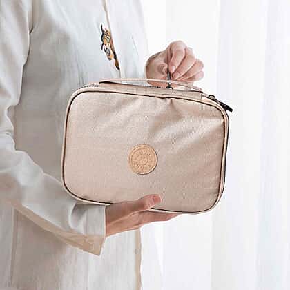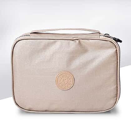 Portable Makeup Bag (Size 22x5x15x5cm) with Wrist Band Handle in Gold Colour