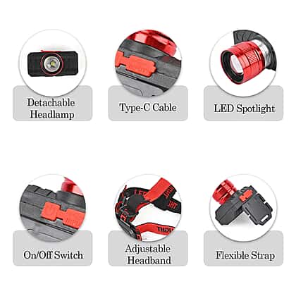 Enhance your outdoor adventures with the rechargeable headlamp with 3 modes, designed for hands-free illumination. Featuring ultra-bright LED bulbs, it ensures excellent night vision for activities like camping, hiking, and cycling. With three lighting modes—high, low, and flash—plus a zoom function, you can switch between a focused spotlight and a wide floodlight. The adjustable head and flexible strap provide a secure, comfortable fit for extended wear. Made from lightweight yet durable plastic, it includes a 1200mAh rechargeable battery with a micro USB input and USB cable, making charging quick and hassle-free.