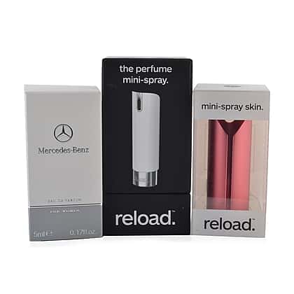 Reload Mini Perfume Spray White (Incl. Mercedes For Women and Aluminium Red Skin)