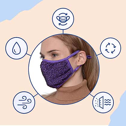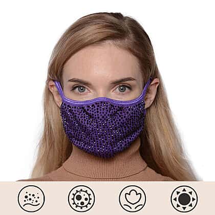 Rhinestone Face Cover with Filter Pocket and Adjustable Ear Button in Purple Colour