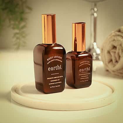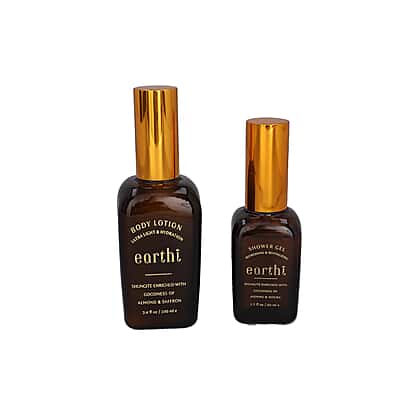 Shungite Enriched Earthi Almond and Saffron Body Lotion with Complementary Jasmine and Mogra Shower Gel (100ml+50ml)