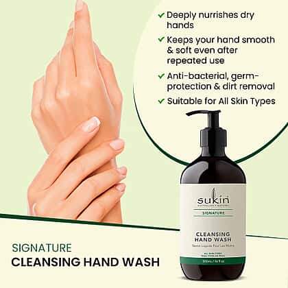 Do you have to moisturise your hands every time you use a hand wash? Then it is time to switch to Sukin’s Signature Hand Wash. The super-cleansing hand wash gently removes dirt and germs from the hands. The Jojoba, Avocado and Rosehip essential oils ensure that the cleansing process does not dry your skin or leave it stretched. Sukin’s Signature Scent comprising of Mandarin, Tangerine, Lavender and Vanillin notes will refresh your senses.