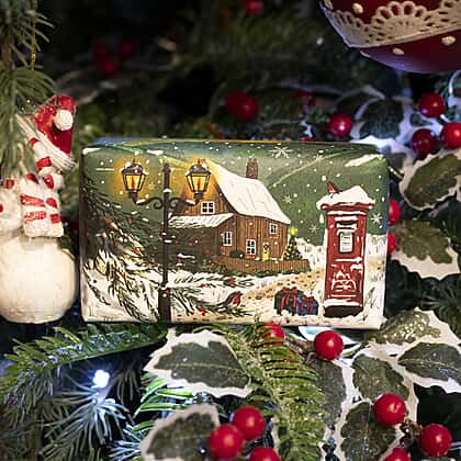 Celebrate the beauty of nature with the English Countryside in Winter Christmas Soap Bar. This 190g soap, enriched with shea butter, leaves skin soft, smooth and delicately scented. Its fragrance captures the freshness of winter greenery, blending jasmine, rose, lily, violet and muguet for a serene floral aroma. Handcrafted using pure vegetable oils, it’s vegan-friendly, cruelty-free, and wrapped in fully recyclable paper — a thoughtful, eco-conscious gift or stocking filler. Inspired by tranquil country landscapes, this luxurious soap brings a comforting hint of the outdoors to your festive season, making every wash feel indulgent and refreshing.