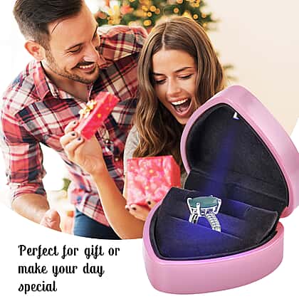 Heart Shaped Design Luxurious Ring Box with LED Light & Velvet Lining (Size 7x6x4 cm) - Pink