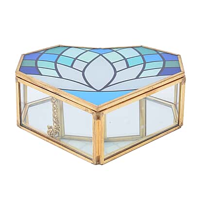 Store your jewellery safely and securely with this heart-shaped metal glass box with a floral print on the top. It is a transparent jewellery box with a mirrored bottom; it comes with a chain inside to support the top when the box is open. Crafted from durable glass and metal frame for long-lasting use. You can gift it to your loved ones this holiday season.