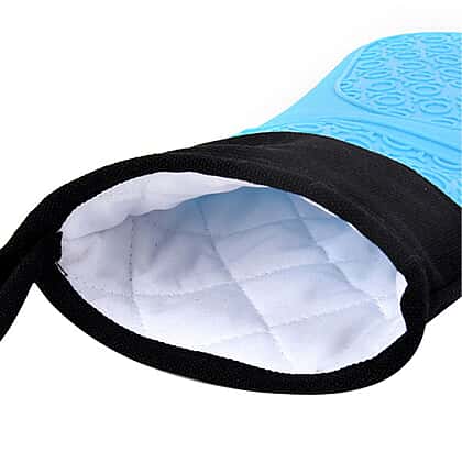 Heat-Resistant Silicone Oven Mitts with Cotton and Canvas Lining - Blue