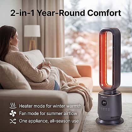 Homesmart: 2-in-1 Ceramic Bladeless Heater with Fan Mode & Remote