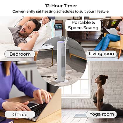 - 12-Hour Timer: Conveniently set heating schedules to suit your lifestyle.