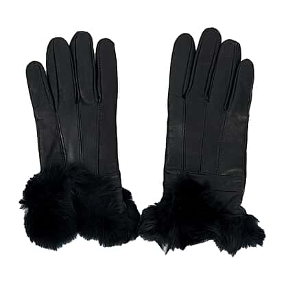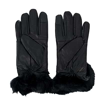 HeatMate Handtouch Genuine Leather Gloves with Faux Fur (Size - L) - Black