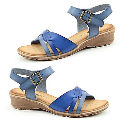 Heavenly Feet Iris Low Wedge Sandals with Adjustable Buckle Strap (Size 3) - Blue